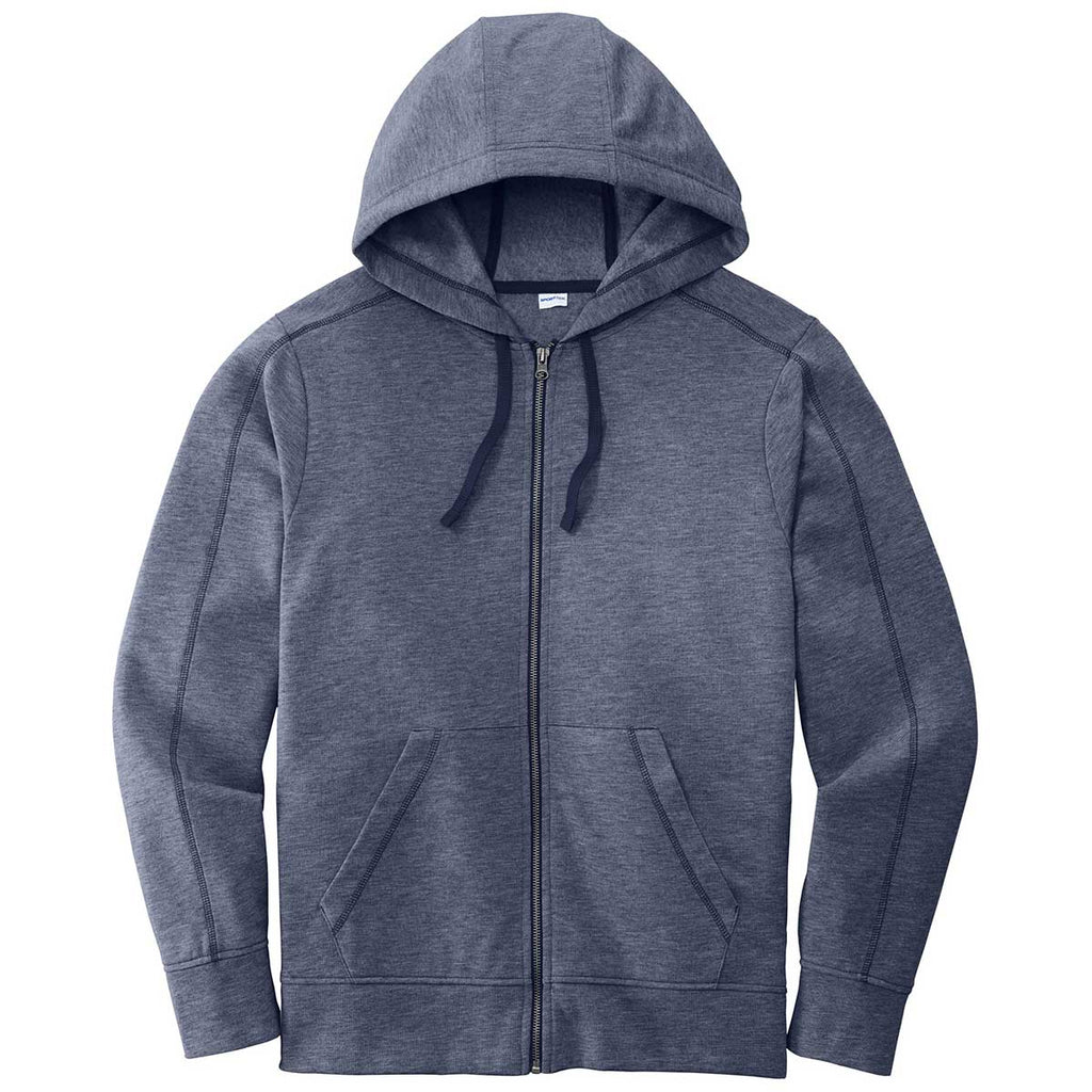 Comfort and performance combine in the custom embroidered Sport-Tek Men's True Navy Heather PosiCharge Tri-Blend Wicking Fleece Full-Zip Jacket. This jacket is the perfect mix of stylishness and comfort with a removable label, three panel hood, and front pouch pockets. Add a custom logo to show support at team events or a company logo to use these as employee gifts for various occasions. The coverstitch details and hood and neck taping point to a quality product. The easy to layer piece can be worn daily or as needed no matter what activity is on the schedule. Place an order today for these well made jackets that everyone will love.Corresponding Women's Style:Sport-Tek Women's True Navy Heather PosiCharge Tri-Blend Wicking Fleece Full-Zip