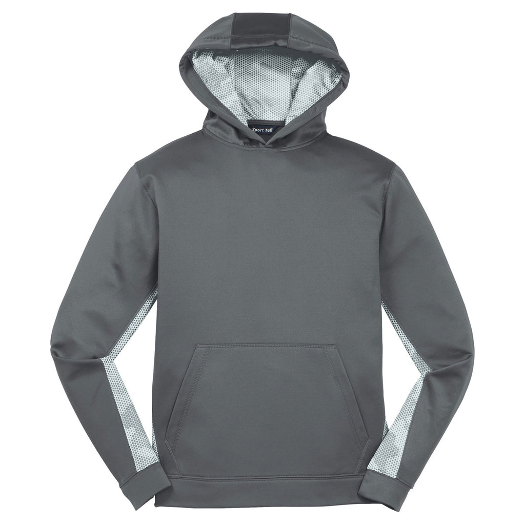 When the weather gets tough, so must you. That's the idea behind this Sport-Tek Youth Dark Smoke Grey/White Sport-Wick CamoHex Fleece Colorblock Hooded Pullover. Add your own custom embroidery to make this a piece of corporate apparel that anyone can enjoy. Layering is ideally suited to serve as your canvas, and this is an item that will work for you in the elements, not against.Highlights