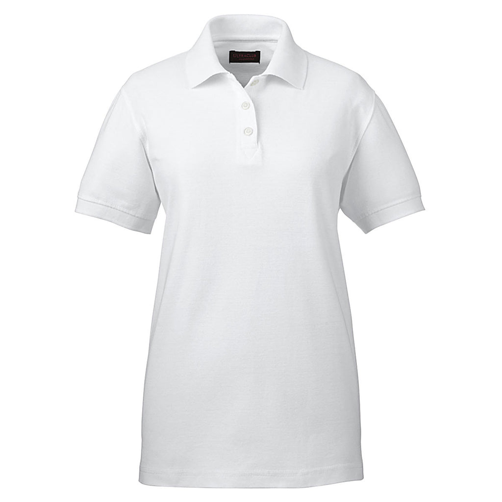 The double-needle bottom hem and half-moon patch on the UltraClub Women's White Whisper Pique Polo will generate interest when you attend professional networking events. Take advantage of the interest by attaching your corporate logo to the large imprint area. Custom prospects will connect your company with quality products and services. The feminine fit feels snug, but always comfortable to make you feel fresh throughout your hectic day. Easy to care for cotton and polyester pique fabric resists the types of rips and tears that ruin other corporate apparel. Contoured flat-knit collar and cuffs complete the fashion features for the polo.Corresponding Men's Style: UltraClub Men's White Whisper Pique Polo