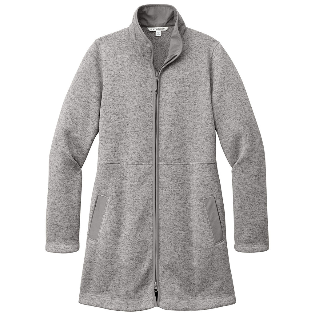 Port Authority Women's Deep Smoke Heather Arc Sweater Fleece Long Jacket with embroidery is a fun and fashionable way to stay warm. The combination of a sweater and fleece creates a multi-seasonal layer with an anti-pill finish and a two-way zipper to wear the longer length comfortably. Great for outdoor parties, cool mornings enjoying the outdoors, or attending sporting events. Order today.Highlights