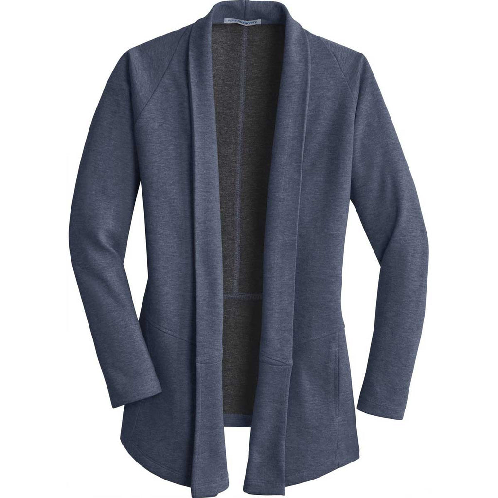 Port Authority Women's Estate Blue Heather/Charcoal Heather Interlock Cardigan