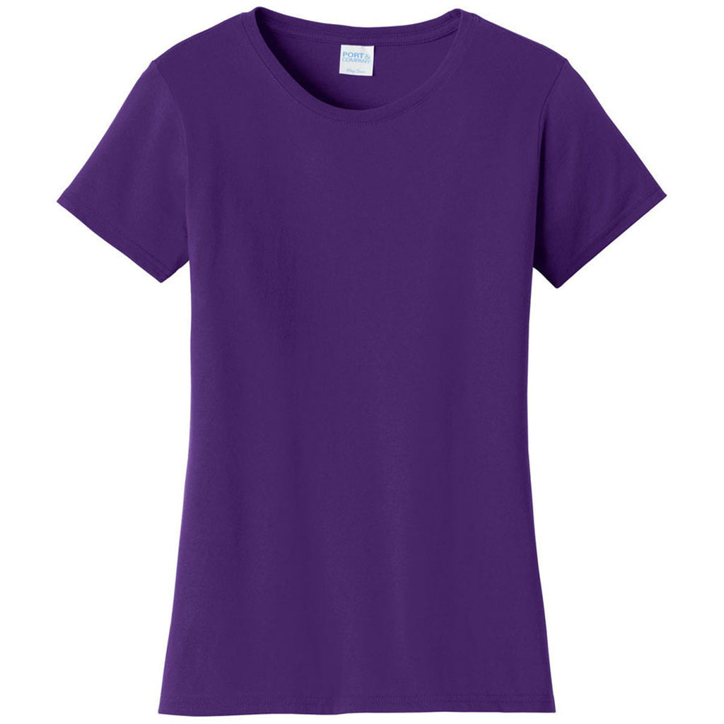 Do moisture laden t-shirts bog you down whenever you need to ramp up the competitive juices? Port & Company Women's Team Purple Fan Favorite Tee contain moisture wicking technology that quickly evaporates perspiration the instant it forms on your skin. The result is a cooling of the skin that invigorates your body. Set-in sleeves allow for more arm movement, which comes in handy on the golf course and tennis court. The super soft fabric endures countless wash and dry cycles, without any of the colors fading. One-hundred percent rugged polyester interlock resists rips and tears. Attach your company logo to the t-shirts to spread the word about your brand.Highlights