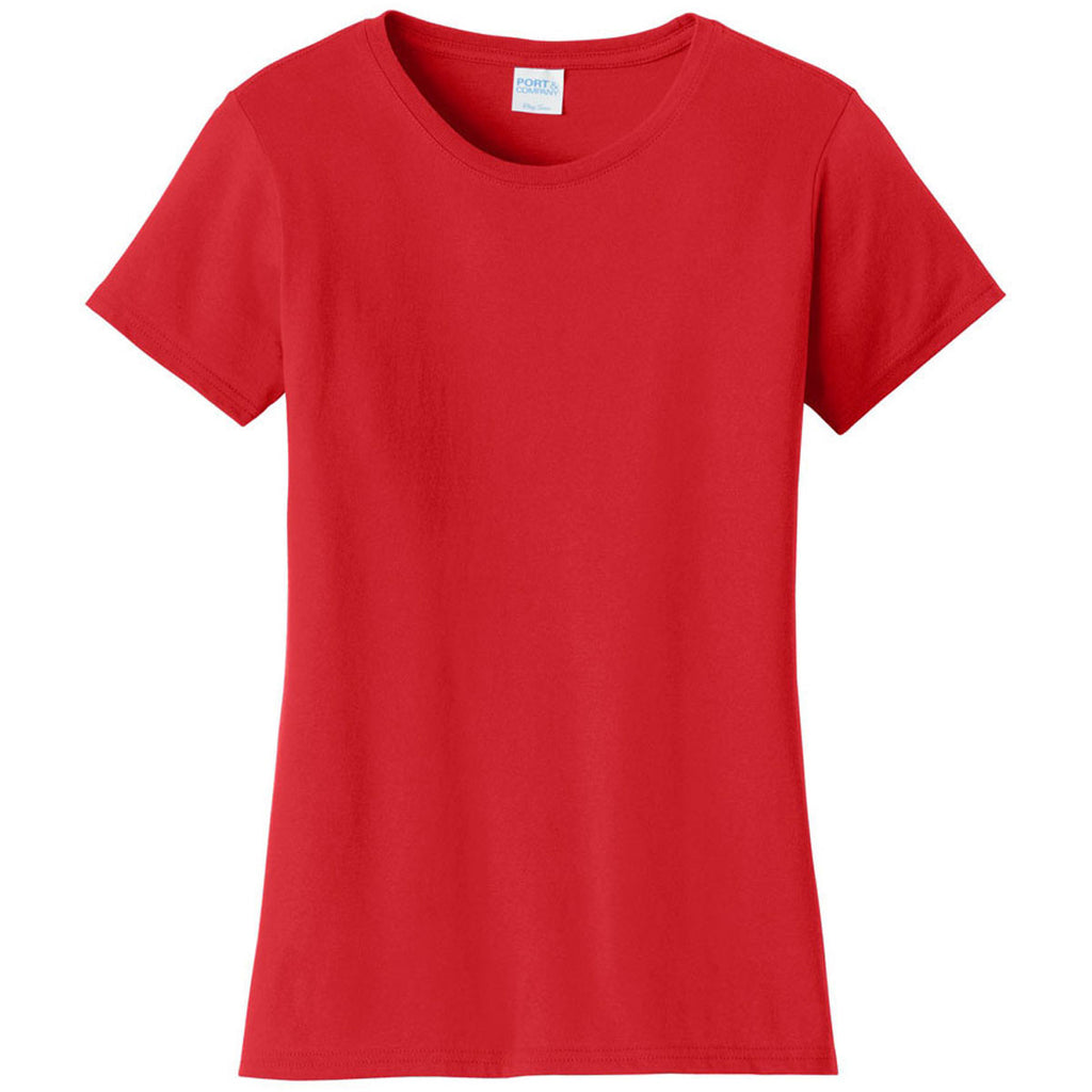 Do moisture laden t-shirts bog you down whenever you need to ramp up the competitive juices? Port & Company Women's Bright Red Fan Favorite Tee contain moisture wicking technology that quickly evaporates perspiration the instant it forms on your skin. The result is a cooling of the skin that invigorates your body. Set-in sleeves allow for more arm movement, which comes in handy on the golf course and tennis court. The super soft fabric endures countless wash and dry cycles, without any of the colors fading. One-hundred percent rugged polyester interlock resists rips and tears. Attach your company logo to the t-shirts to spread the word about your brand.Highlights