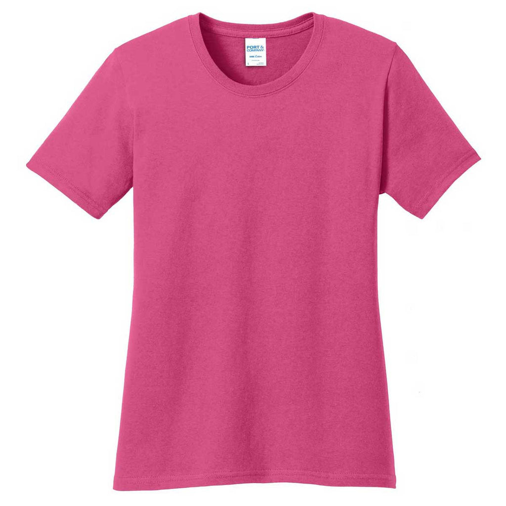 Decked out in a solid hue and flaunting a flattering fitted silhouette, this ultra-soft crewneck t-shirt adds a comfortable layer to your favorite ensembles. Crafted from lightweight, breathable 100% cotton. Available at a wallet-friendly price, this summer staple tee is a perfect solution to bulk corporate giveaways by customizing it with your company logo and/or message on it. Using a personalized version of this Port & Company Women's Sangria Core Cotton Tee as uniform will develop a sense of brand consistency and credibility.Corresponding Men's Style: Port & Company Men's Sangria Core Cotton Tee