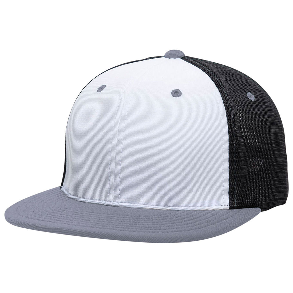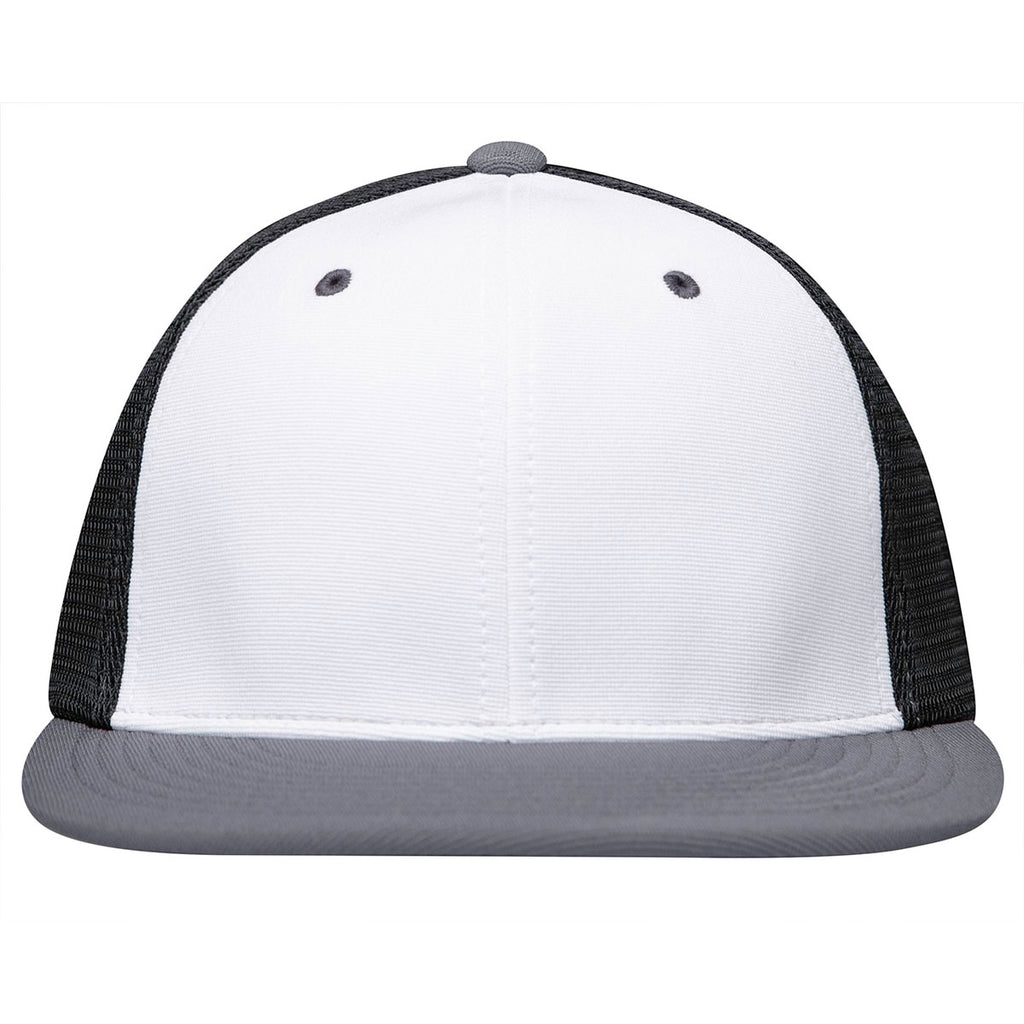Pacific Headwear White/Black/Graphite Premium M2 Performance Trucker FlexFit Cap