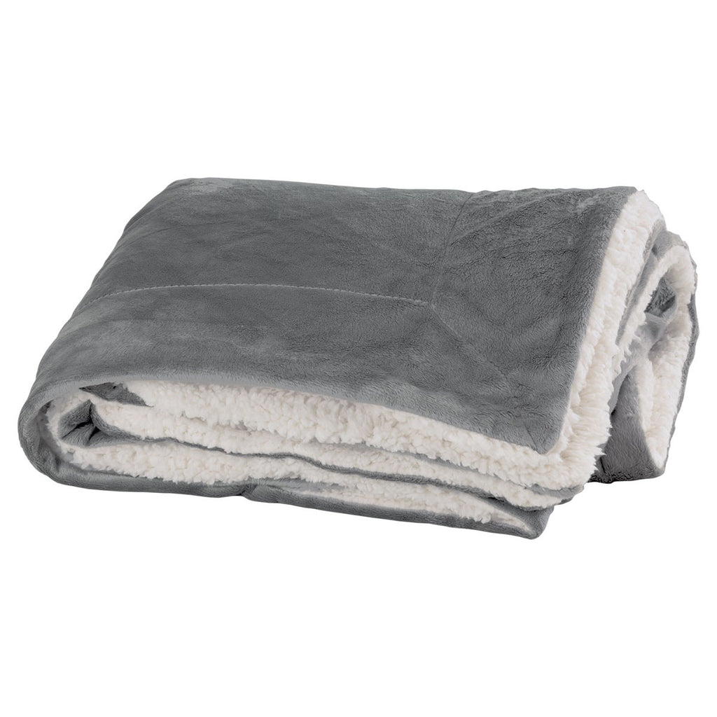 Stay warm on frigid winter days by covering your body with the embroidered Vantage Grey Faux Mink Sherpa Blanket. Ideal as an extra blanket for your bed, or as another layer to keep you warm in a sleeping bag. The Sherpa blanket contains faux lamb's wool that delivers supreme comfort. The 100% polyester fabric resists the rips tears making it durable without sacrificing comfort. The concealed zipper located in the corner hem makes it easy to pack while traveling. Add your corporate logo to have an excellent gift at your company's next recruiting event.Highlights