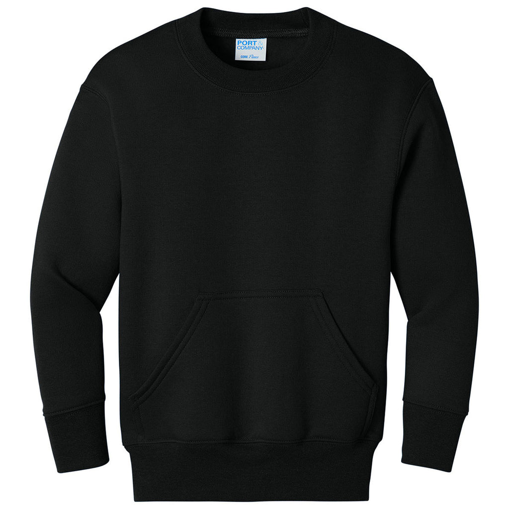 Port & Company Youth Jet Black Core Fleece Crewneck Pocket Sweatshirt