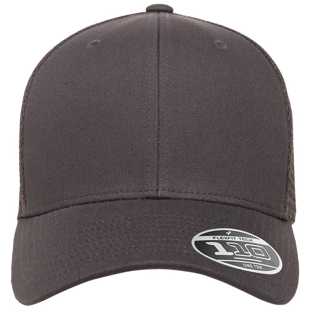 Top off your look with a custom logoed Flexfit Men's Charcoal 110 Mesh Cap. Made of a polyester and cotton blend, the adjustable Flexfit cap is comfortable and breathable whether working at home or playing in the big game. Add a custom logo as part of a uniform or a company logo to keep the softball team looking great and cohesive. The 6 panel, mid-profile, structured cap has a plastic snapback closure for a one size fits most design. Protect your face and eyes with the permacurve visor while still enjoying the time in the sun.Highlights