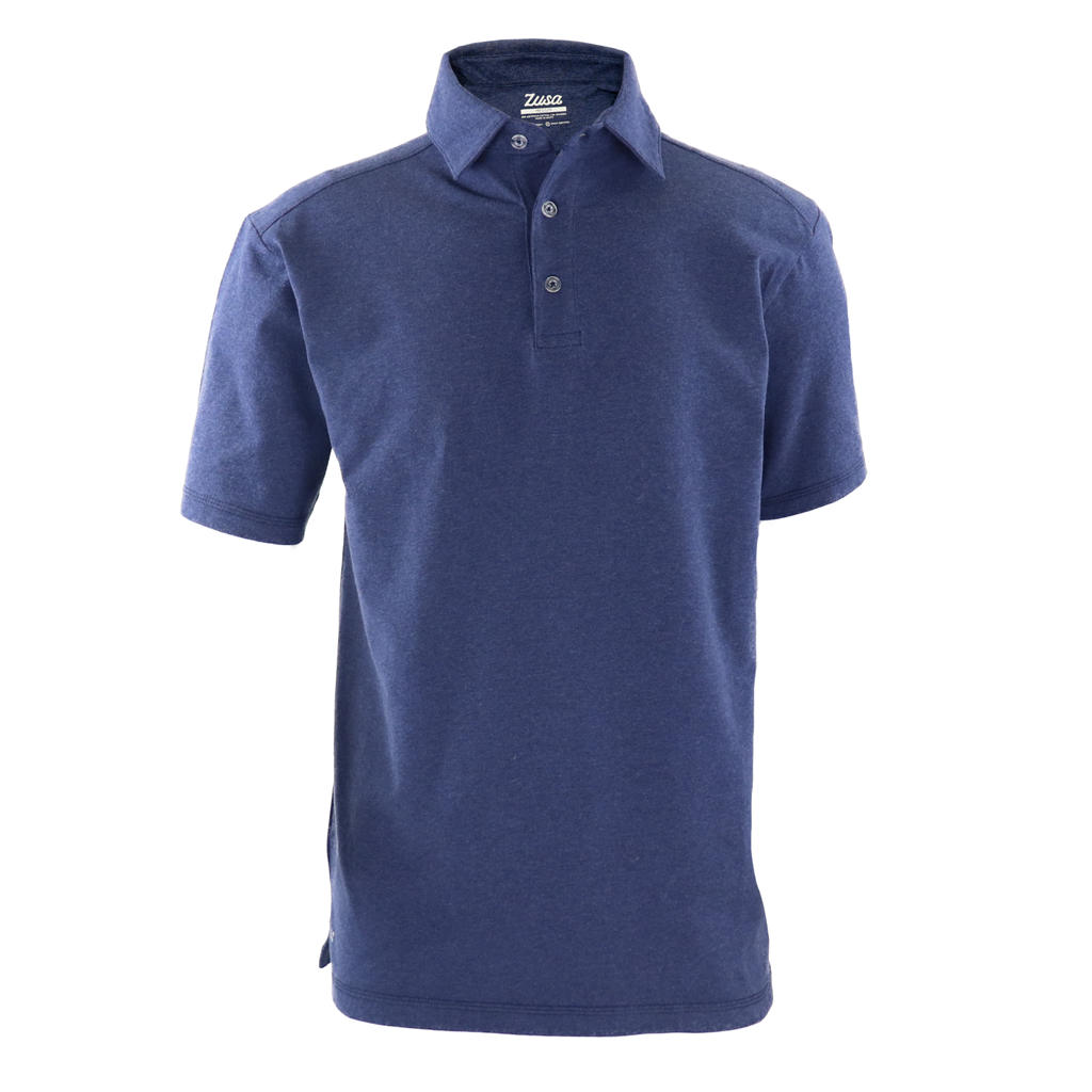 The sustainable Zusa True Navy Heather Peachy Polo is here to be your new favorite, everyday corporate polo! From the office to your weekend plans, the custom Peachy Polo will have you doing it all while staying comfortable and looking sharp. The Egyptian cotton is made with a brushed finish making this logo-branded sustainable polo the softest you'll ever own! Our favorite part? This custom polo shirt for men combines the comfort you need with the sustainability the Earth needs. Win-win!