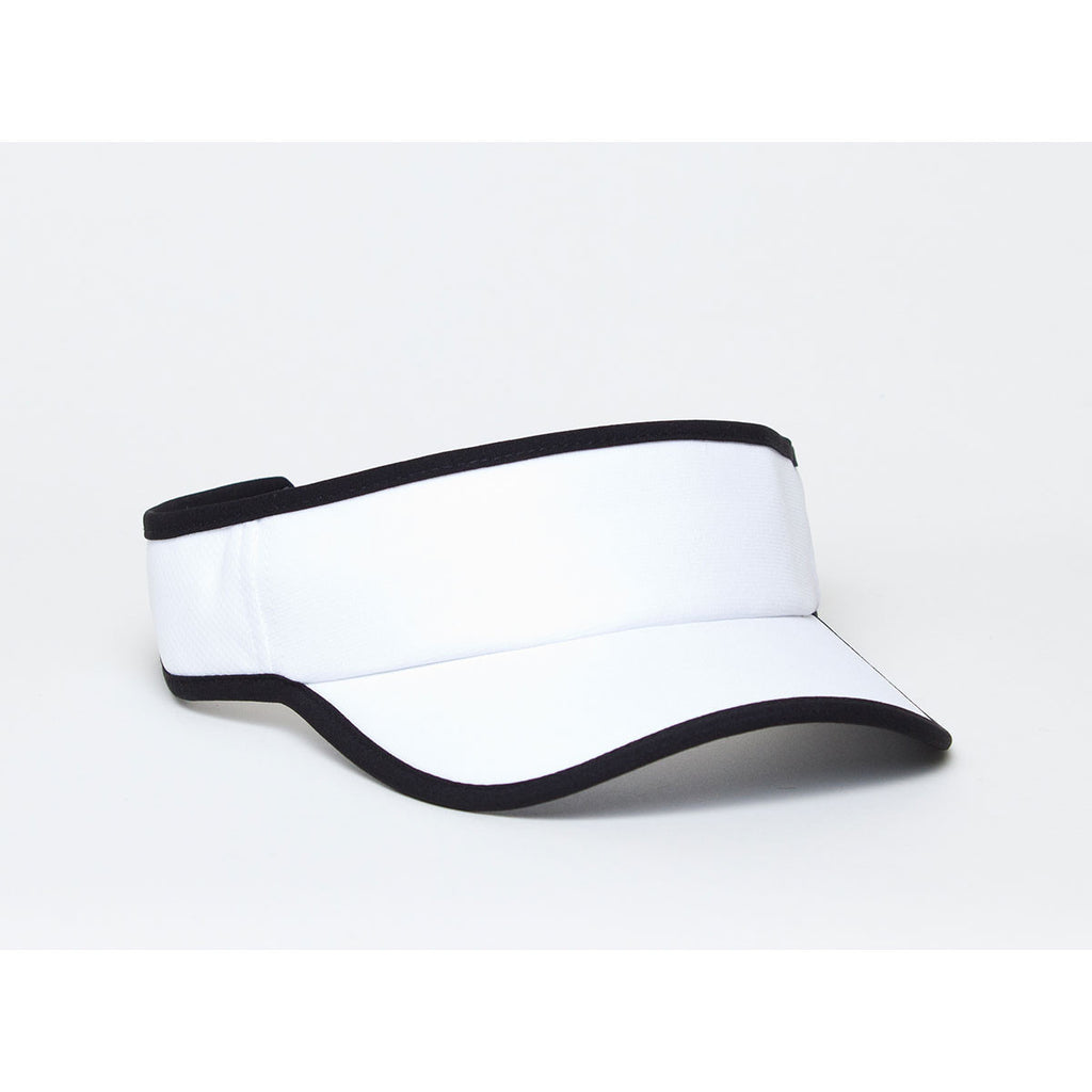 The two-inch crown on the logoed Pacific Headwear White/Black Lite Series All-Sport Active Visor does a great job of preventing the sun from obscuring your vision during an outdoor recreational activity. Wear the stylish visor on the golf course or at the weekly corporate league softball game. Lightweight to keep you fresh all day long, the cap contains "Ghost" performance polyester fabric to ensure supreme comfort. The reference to "Ghost" means you do not even notice the cap is there. Give the fashion accessory to the hard working members of your team to show your appreciation. Just remember to add a custom logo that generates buzz for your company everywhere your employees go.Highlights