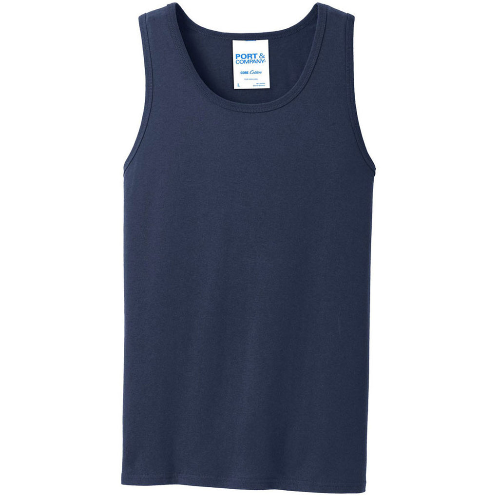 Is there anyone who doesn't like a good tank? If so, we haven't met them. This Port & Company Men's Navy Core Cotton Tank Top is an especially astute choice. But tank tops aren't all about the clothing on your backodd as it might sound to saybecause they can also help your company create some corporate apparel that people will love. By giving them to employees or as giveaways, you can use them to promote your brand and spread the word about specific events.Highlights