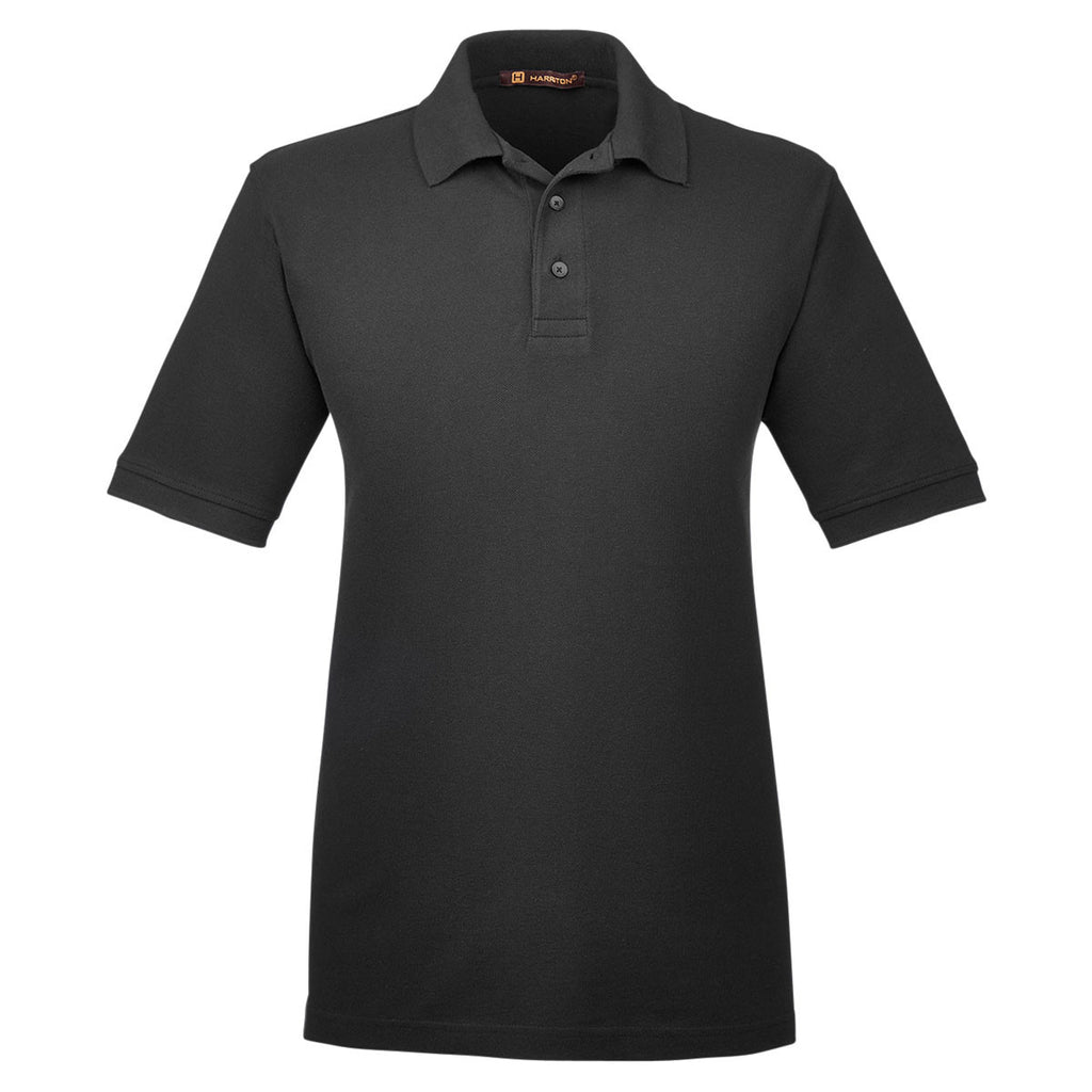 Harriton Men's Black 6 oz. Ringspun Cotton Pique Short-Sleeve Polo