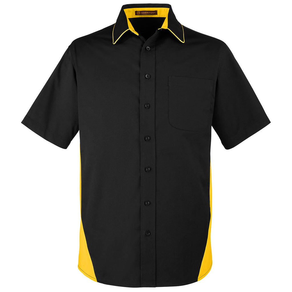Harriton Men's Black/Sunray Yellow Flash Colorblock Short Sleeve Shirt