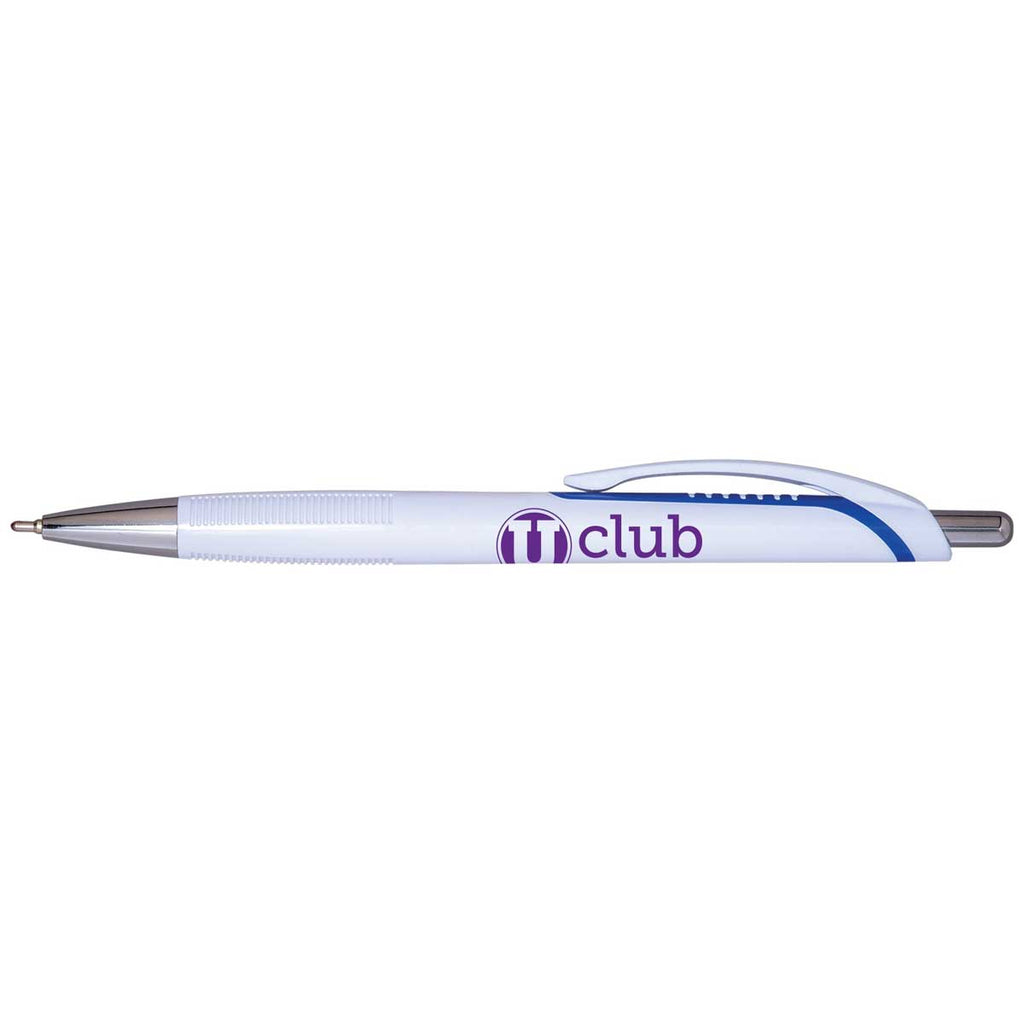 With the presence of your custom logo, the Hub Pens White Pen with Blue Trim & Black Ink becomes a mini billboard that promotes your company. A smart, functional item that you can count on every time you need to write down notes or doodle something to get you out of boredom - enhanced with a hybrid ink for smooth writing. An ideal addition to event giveaways or employee giveaways!