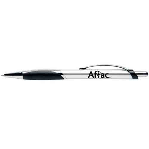 The imprint area on the wide section of the Hub Pens Silver Chillex Pen barrel provides plenty of room for adding your company logo. Rich black ink never smears on writing surfaces to ensure you can read what you wrote down hours after a business seminar lecture. Ballpoint action always delivers a rugged tip that moves smoothly over paper. Shimmering metallic finish and glossy black chrome trim exceed consumer design expectations. The wide body and jumbo grip eliminates the nagging pain caused by holding a writing instrument for hours at a time.