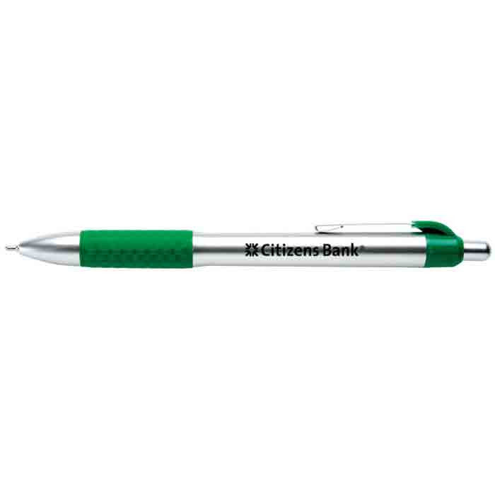 Push a button to eject or retract a pen tip that consistently delivers ink on all types of writing surfaces. Ballpoint quality writing keeps you on top of taking notes during business seminars and conferences. Market your company by giving the Hub Pens Green Maxglide Click Chrome Pen away on customer and employee appreciation days. All you have to do is add your corporate logo to spread the word about your company in the community. Screen printing makes it easy for potential customers to recognize your brand. The raised rubber grip prevents finger and hand pain that results from frequent use of the pen.