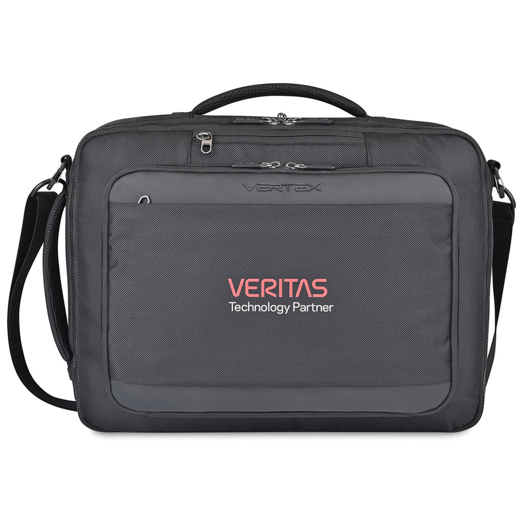 Choose a corporate logo for the Vertex Black Brooklyn Dual Carry Briefpack to give employees a stylish way to stay organized. Designed to be worn as a backpack, hand-carried, or thrown over the shoulder, this briefpack is ready for a hard day at work. The padded tech storage holds a 10" tablet or up to a 16" laptop, along with all the accessories.
