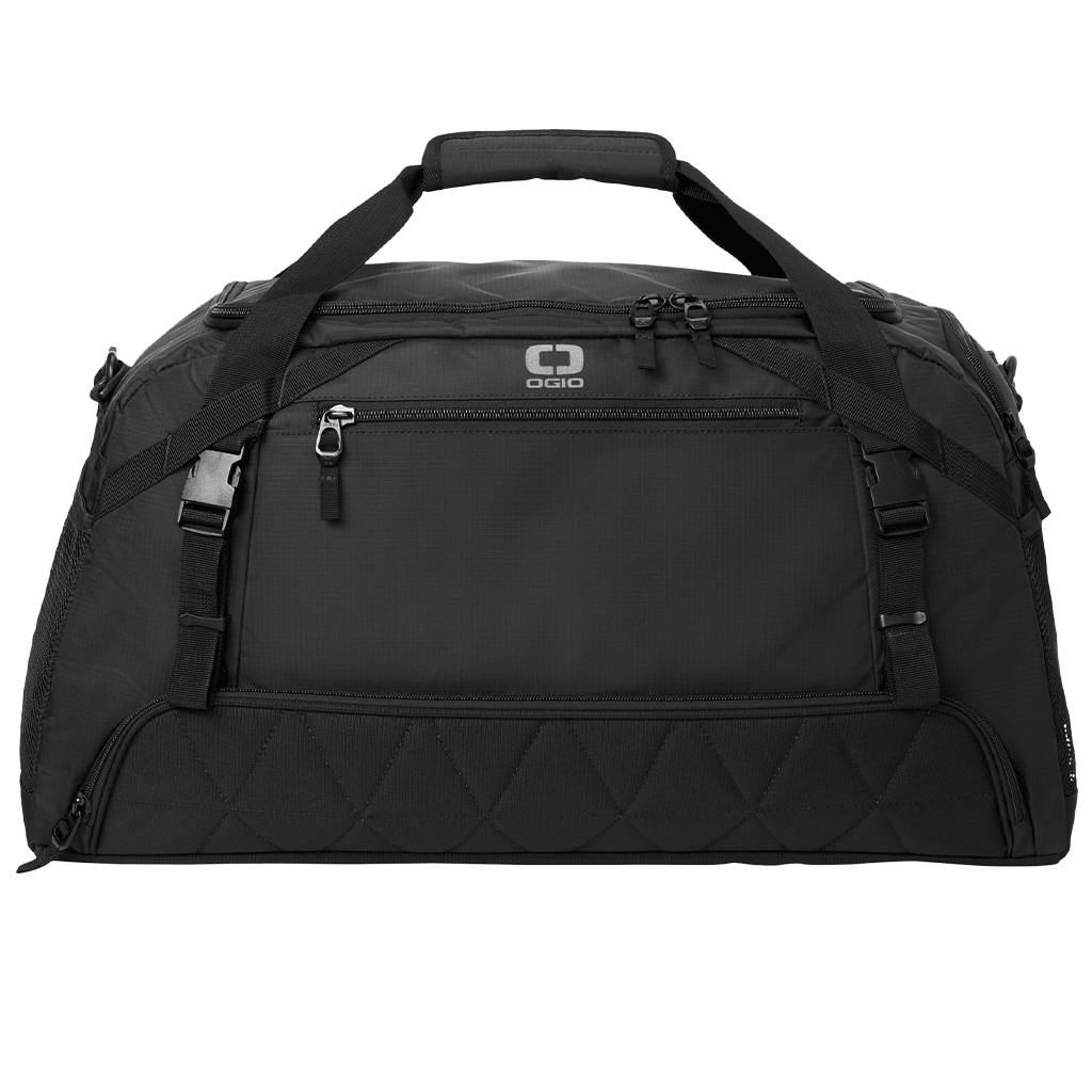 Add your company's custom logo to the OGIO Blacktop Motion Duffel to successfully spread the word about your brand at the gym, the airport, and everywhere in between. This durable duffle bag includes must-have extras like interior mesh storage pockets, a shoe storage compartment, and a padded laptop sleeve.