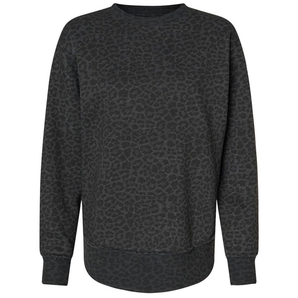 LAT Women's Black Leopard Weekend Fleece Crewneck Sweatshirt