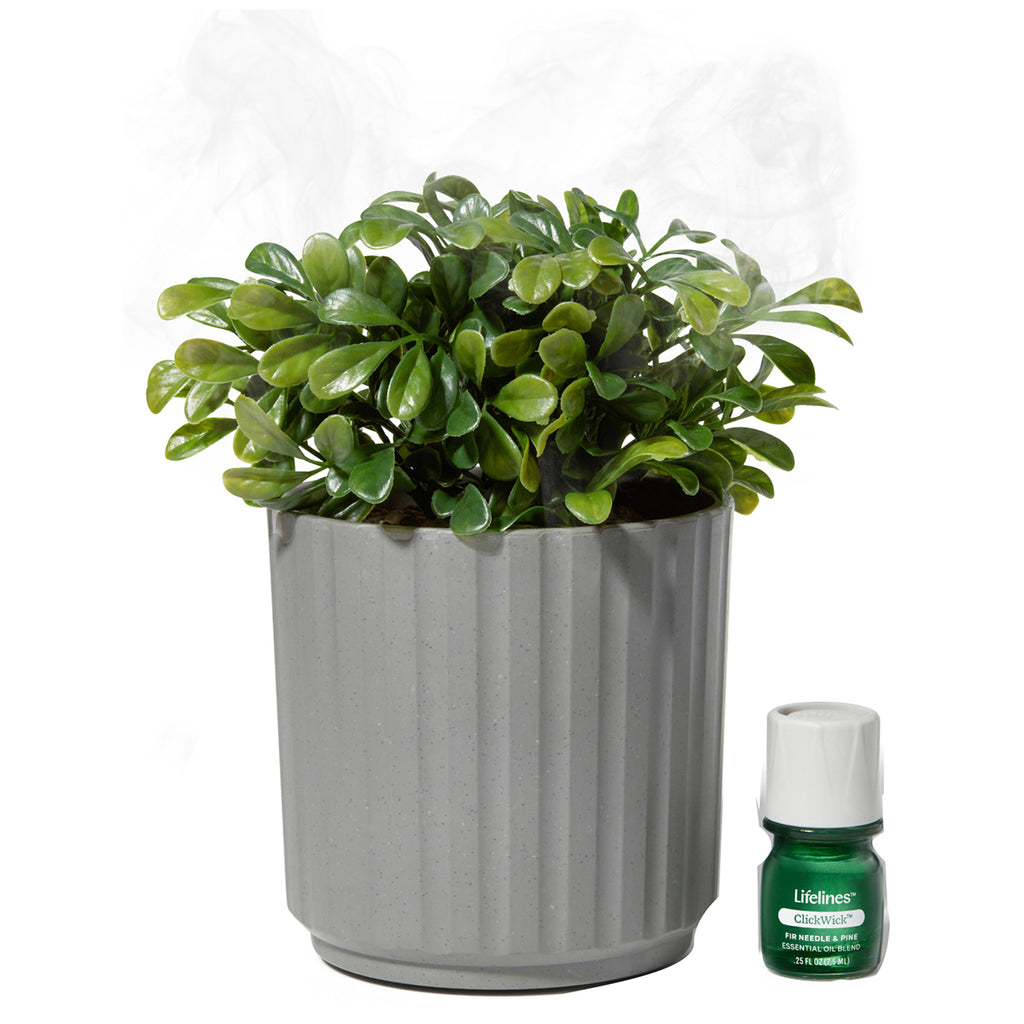 Lifelines Ribbed Grey Boxwood Plant Diffuser offers a custom look for your home or office without the work. This faux boxwood plant is also a diffuser that is simple to use with the unique ClickWick design that quickly fills your room with the soft aroma of essential oils. Perfect as a gift for the holidays, as a housewarming present, or for a special occasion.