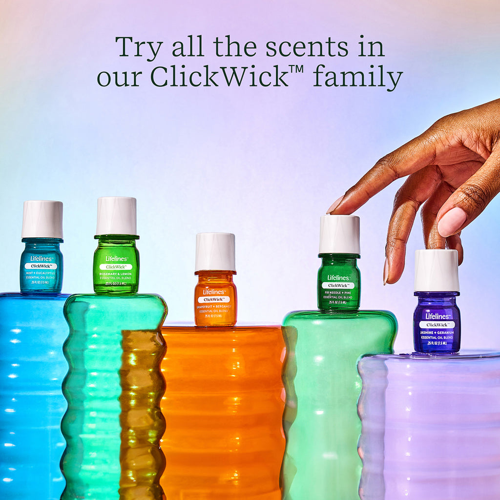 - No watering, sun, or re-soiling needed! Includes bottle of Lifelines Essential Oil Blend with innovative ClickWickdesign, allowing bottle to click into the bottom of the planter for a seamless aroma experience.
