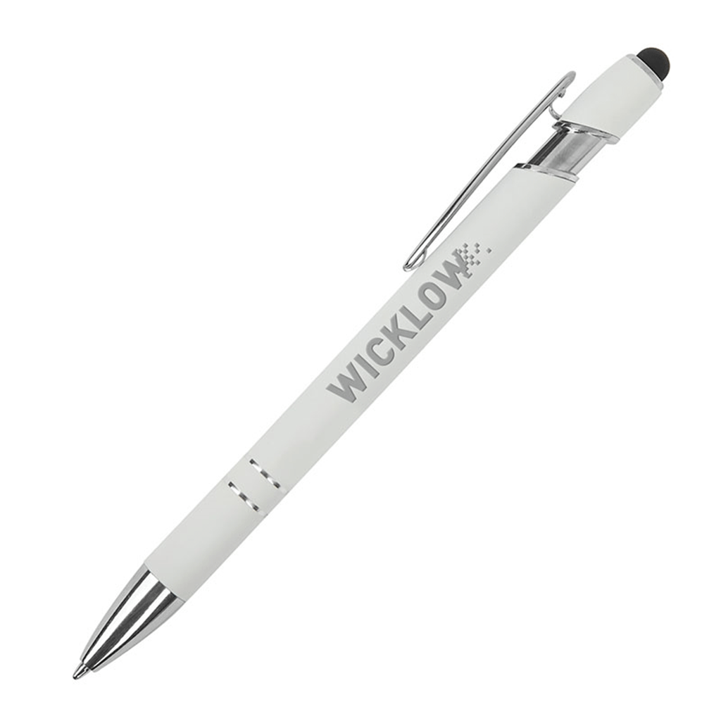 The White Denton Soft-Touch Pen with Stylus comes with a stylus and has an elegant look and a classic design. It has a plunge-action mechanism, chrome trims, a rubberized finish and pocket clip. Perfect for business professionals in an office environment, the Denton is also compatible with touch screen devices.The minimum order for this product is 500 pieces.