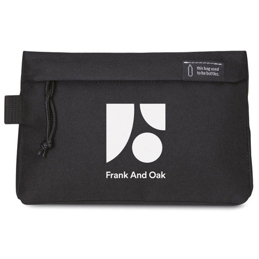 - A modern and sustainable update to a classic pouch using recycled fabric and webbing made from plastic bottles
