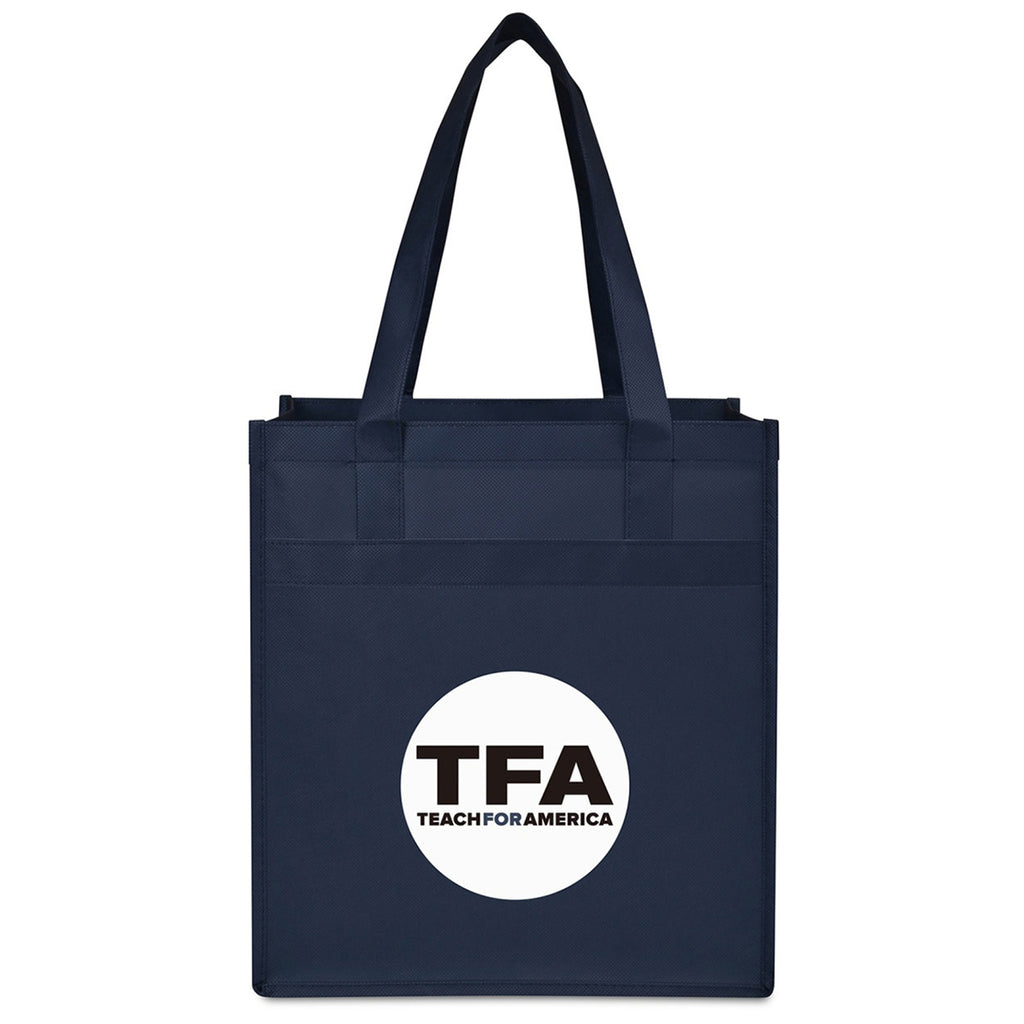 Be eco-friendly with a custom logoed Gemline Navy Arlo rPET Deluxe Shopper. This recycled shopper tote is designed for everyday adventures with a splash of color. The reusable shopping bag is perfect for groceries, with a large main compartment and 24-inch shoulder straps for easy carrying. Order several colors to provide options.The minimum order for this product is 150 pieces.