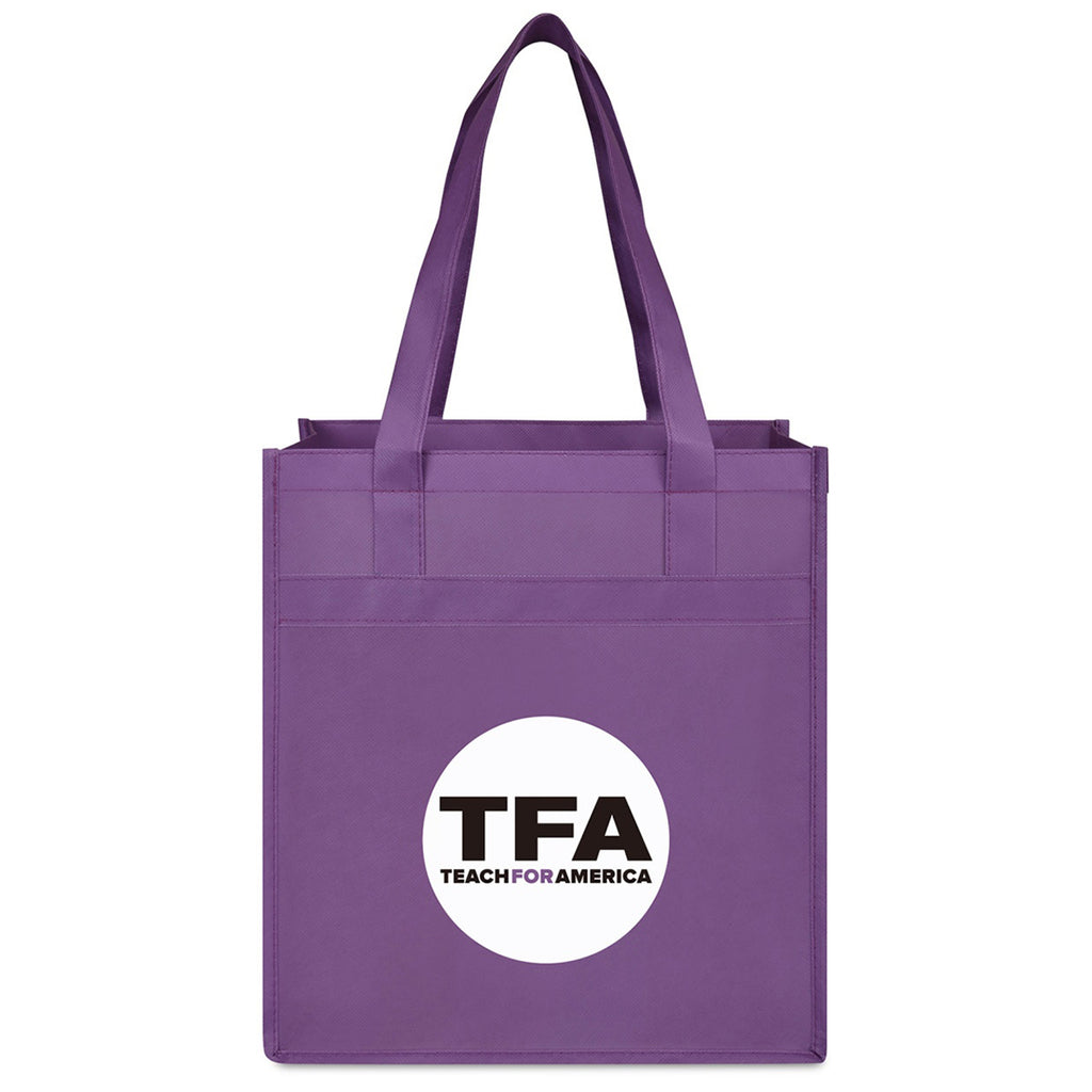 Be eco-friendly with a custom logoed Gemline Purple Arlo rPET Deluxe Shopper. This recycled shopper tote is designed for everyday adventures with a splash of color. The reusable shopping bag is perfect for groceries, with a large main compartment and 24-inch shoulder straps for easy carrying. Order several colors to provide options.The minimum order for this product is 150 pieces.