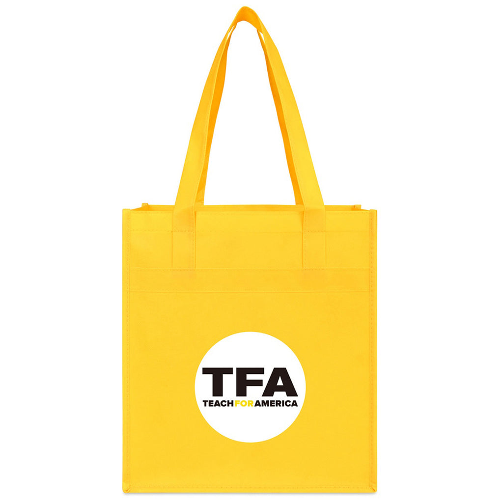 Be eco-friendly with a custom logoed Gemline Yellow Arlo rPET Deluxe Shopper. This recycled shopper tote is designed for everyday adventures with a splash of color. The reusable shopping bag is perfect for groceries, with a large main compartment and 24-inch shoulder straps for easy carrying. Order several colors to provide options.The minimum order for this product is 150 pieces.