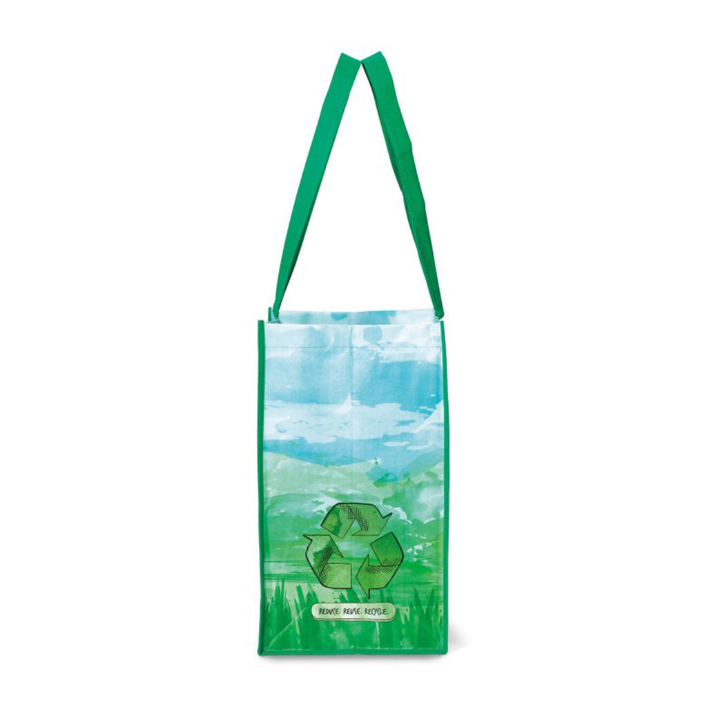 Choose your printed custom design for the Gemline Kelly Green-Pattern Vita Laminated Recycled Shopper to create an eco-friendly option for your customers. The easy-to-carry shopper with a front pouch pocket is great for grocery or retail stores that focus on being Earth-friendly.