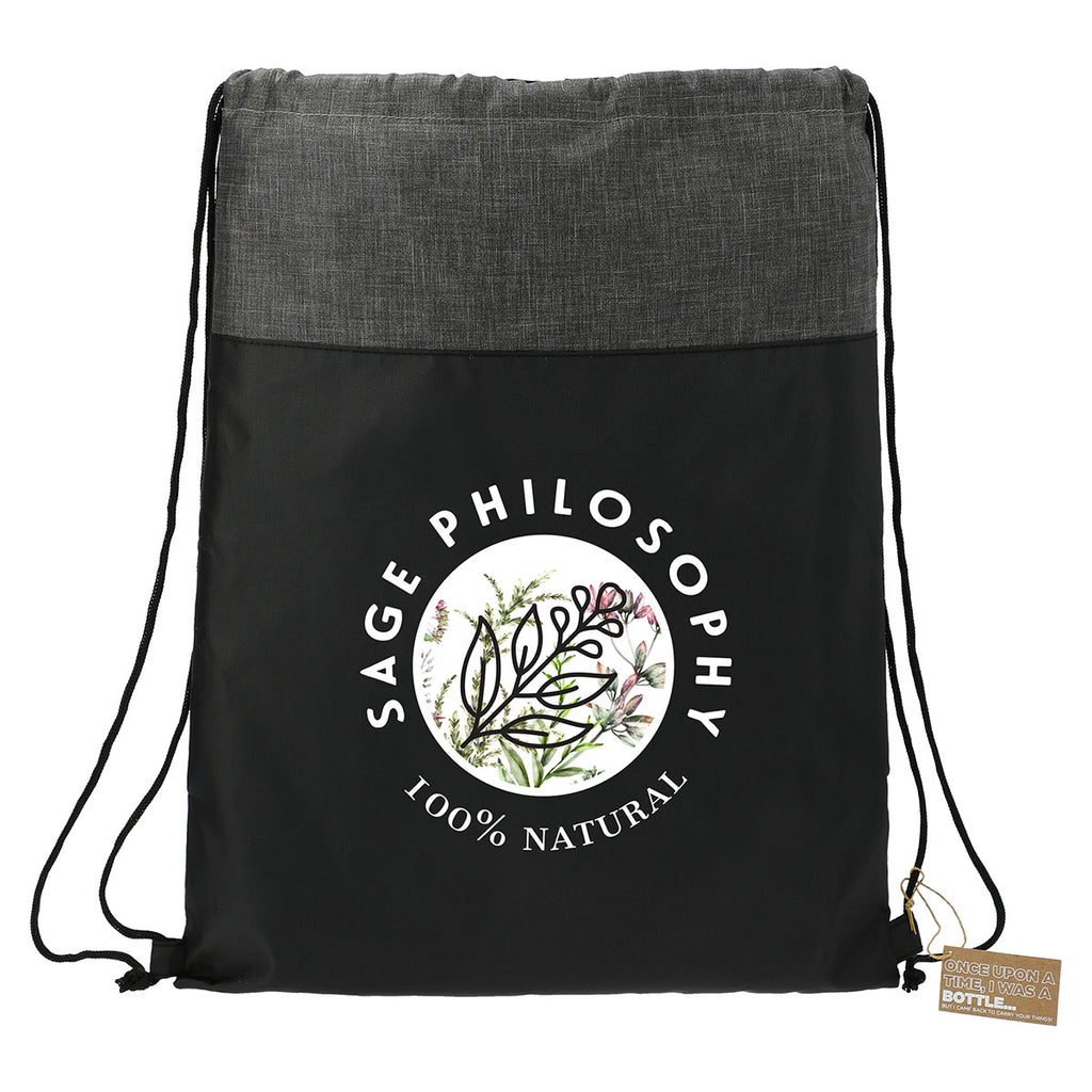 You'd never guess just by looking at it, but the Leed's Black Ash Recycled Drawstring Bag is actually made from recycled water bottles. Perfect for eco-friendly brands who want to make their company's custom logo stand out in a crowd, adding your personalization to this awesome item will create a promotional item that is great for event giveaways, trade shows and more.The minimum order for this product is 150 piece.