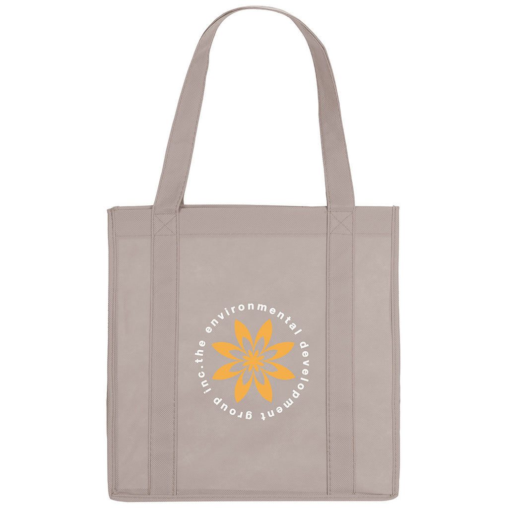Shop with ease using a custom Good Value Grey Grocery Tote. Whether you own a store, sell a specific product, or just like to show off your style, this tote is perfect for staying green and keeping your purchases organized. The reusable tote is ideal for quick trips to the market after work or school. Easily resell to encourage use in your store.The minimum order for this product is 250 pieces.