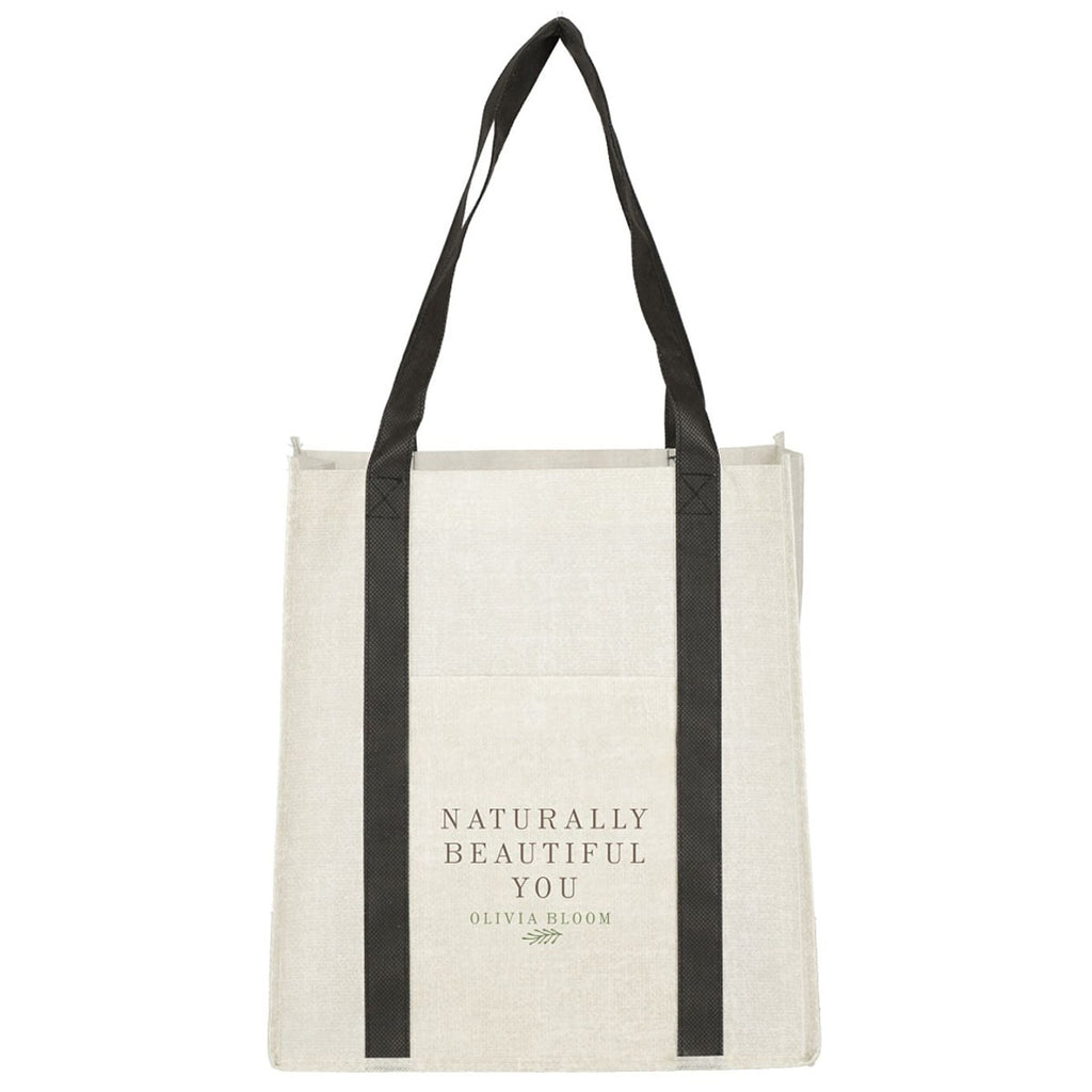 The Bullet Black Pluto Recycled Non-Woven Small Grocery Tote is the perfect promotional accessory for eco-friendly brands who care about the planet. Made from recycled materials, this go-anywhere tote will show off your company's custom logo or design while also providing an alternative to single-use shopping bags.