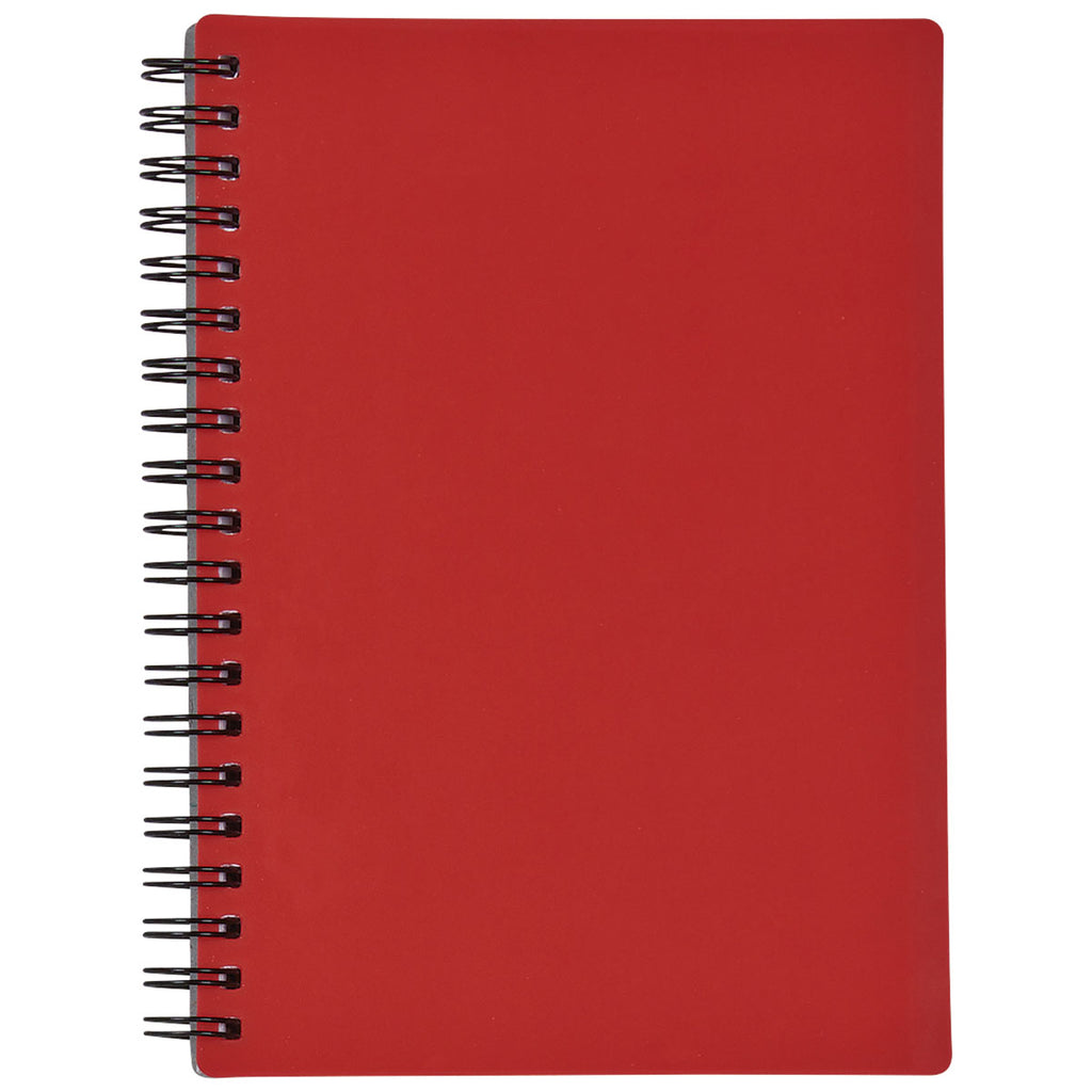 Hit Red Rubbery Spiral Notebook with a corporate logo is a convenient way to take notes and stay organized. The 70 page lined notebook has a PVC cover and cardboard back to showcase your brand. Ideal for use in large meetings, to use at recruitment events, or offer to new clients as a welcome.