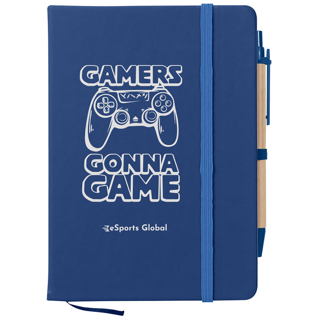 Stay organized with a custom Hit Blue Journal Notebook With Sticky Notes & Flags. This convenient little journal is ideal for research, office or meeting notes, and journaling. The 80-page lined notebook is housed in a polyurethane cover with a matching strap, pen, pen loop, sticky notes, and a built-in card holder.