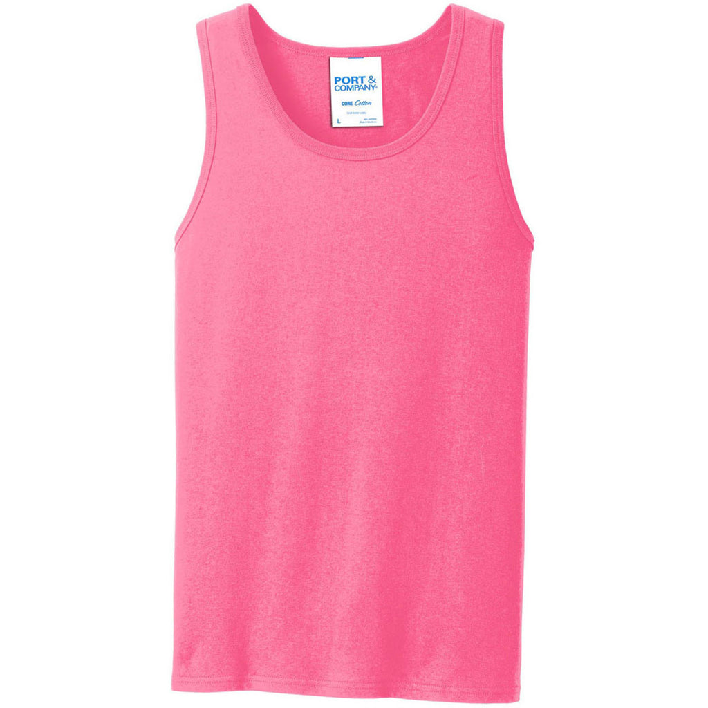 Is there anyone who doesn't like a good tank? If so, we haven't met them. This Port & Company Men's Neon Pink Core Cotton Tank Top is an especially astute choice. But tank tops aren't all about the clothing on your backodd as it might sound to saybecause they can also help your company create some corporate apparel that people will love. By giving them to employees or as giveaways, you can use them to promote your brand and spread the word about specific events.Highlights