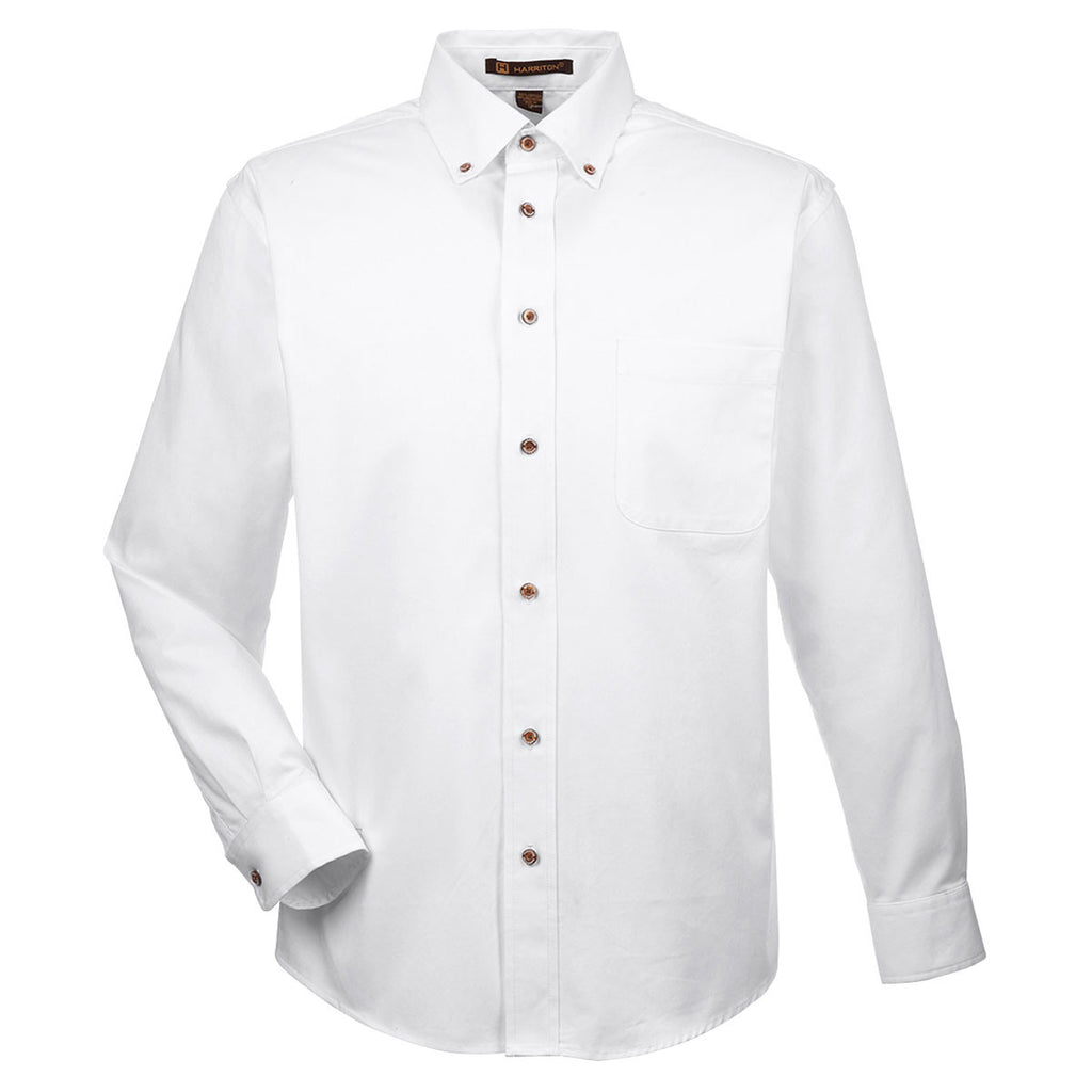 Harriton Men's White Easy Blend Long-Sleeve Twill Shirt with Stain-Release