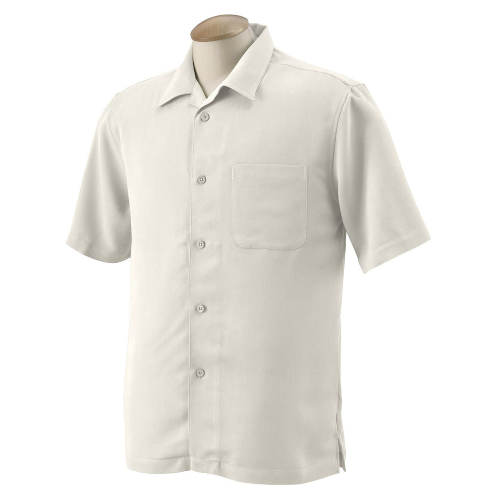 Sixty-six percent rayon and thirty-four percent polyester pieced Bedford cord comprise the rugged materials that make up the Harriton Men's Creme Bahama Cord Camp Shirt. The versatile shirt resists rips and tears to give you years of high-quality use. Wrinkle prevention properties allow you to wear the stylish camp shirt throughout the day, without unsightly wrinkles appearing on the fabric. The full-button front complements the self-fabric collar to create a fashionable corporate garment that is the perfect gift for the loyal customers of your business. Attach your corporate logo to increase recognition of your company at business seminars.Corresponding Women's Style: Harriton Women's Creme Bahama Cord Camp Shirt