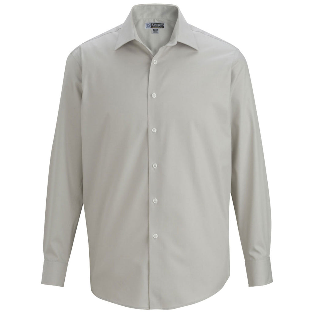 Design a company logo for the Edwards Men's Silver Pinpoint Oxford for a look that is professional and fashionable. Ideal for corporate apparel in and out of the office, this lightly striped long-sleeve shirt is a must have in a professional setting. Wear alone as a uniform or pair with a suit to create a custom look that will give clients faith you are doing your best. The wrinkle free fabric is lightweight with a tailored fit and point collar with sewn in stays. The French placket completes the look that can be dressed up or down as needed. Try a custom logo to add to your high-end logoed apparel line or give as a custom gift that will be a welcome addition to any wardrobe.