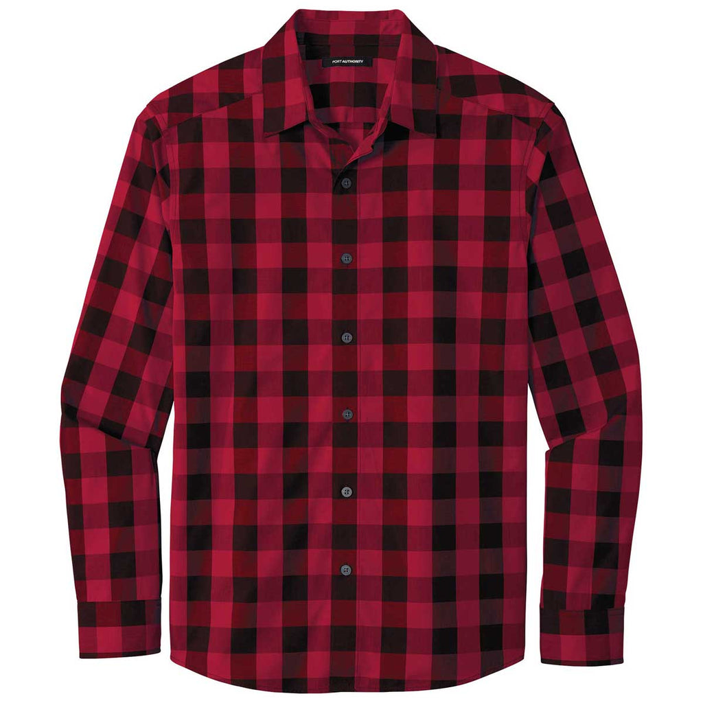 Create a custom look with the Port Authority Men's Rich Red Everyday Plaid Shirt for a rugged appearance that is both comfortable and functional. The traditional buffalo check pattern is fun and lightweight so it can be worn almost anywhere. Made of a cotton, poly blend it is both soft and easy to care for whether you are using it as employee apparel with a company logo or weekend wear with a custom design. The simple details like a bias cut back yoke, open collar, and French front elevate this shirt that will be an instant favorite.