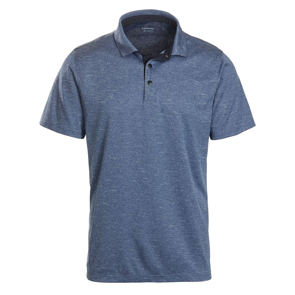 The corporate logoed Landway Men's Heather Navy Walker Melange Snap-Button Polo provides style and comfort in one extremely attractive men's polo shirt. Add your company logo for an even better finished product. Some of the features you're sure to enjoy with this polo include the 100% polyester material, Active Dry moisture management capabilities, reinforced nylon on the placket and inner collar, self-fabric collar, and micro-pique knit. With an embroidery logo depicting your company name on the shirt, you have the perfect gift to distribute at upcoming golf events, trade shows and recruiting events.Highlights