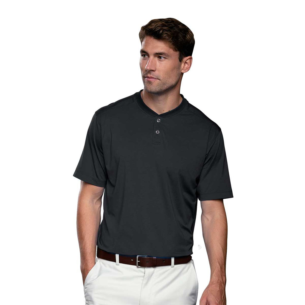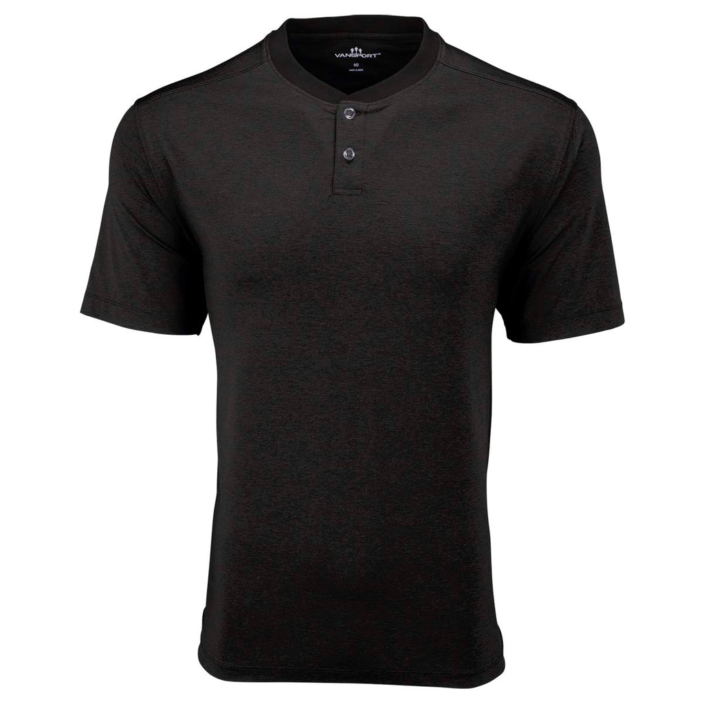 Take charge at the next golf event while looking smashing in the Vansport Men's Black Pro Boca Polo in three classic color options. The comfort polo made of a polyester rich spandex blend can be beautifully embroidered with a company logo to use as part of company uniforms or as company gifts. Complete with moisture wicking melange jersey with both UV and antimicrobial properties, this polo is fitted for comfortable wear on the body with a two button placket.Corresponding Women's Style: Vansport Women's Black Pro Boca Polo