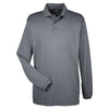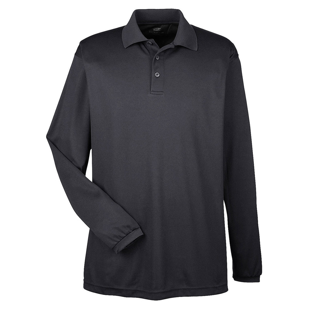 UltraClub Men's Black Cool & Dry Long-Sleeve Mesh Pique Polo