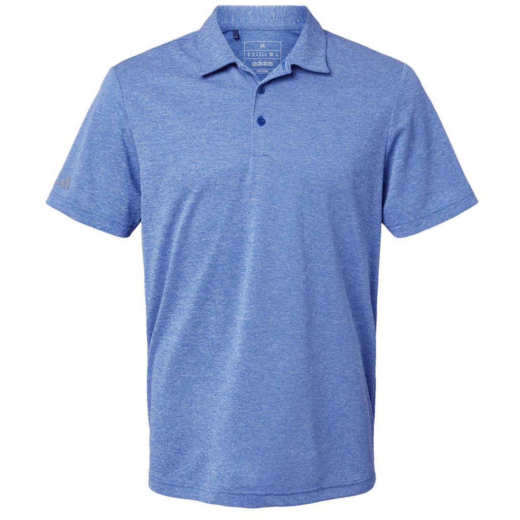 Choose embroidery for the Adidas Men's Collegiate Royal Melange Heathered Polo for a classic yet softer look with impressive heathered coloring. Made of recycled polyester, this polo is great for golf, trade shows, or general day-to-day wear. Give as a gift or share as part of your custom, logoed apparel line.This product cannot ship outside of the United States