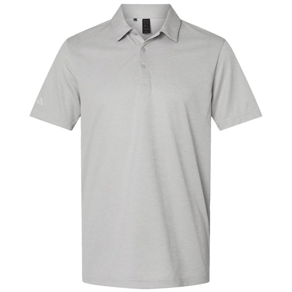 Adidas Men's Grey One Heather Space Dyed Polo with a corporate logo is a fashion-forward way to showcase your company or brand. Whether playing in a golf tournament, working out of the office, or showcasing products at a trade show, this is a true must-have. The contrasting Adidas logo is on the right sleeve.This product cannot ship outside of the United States