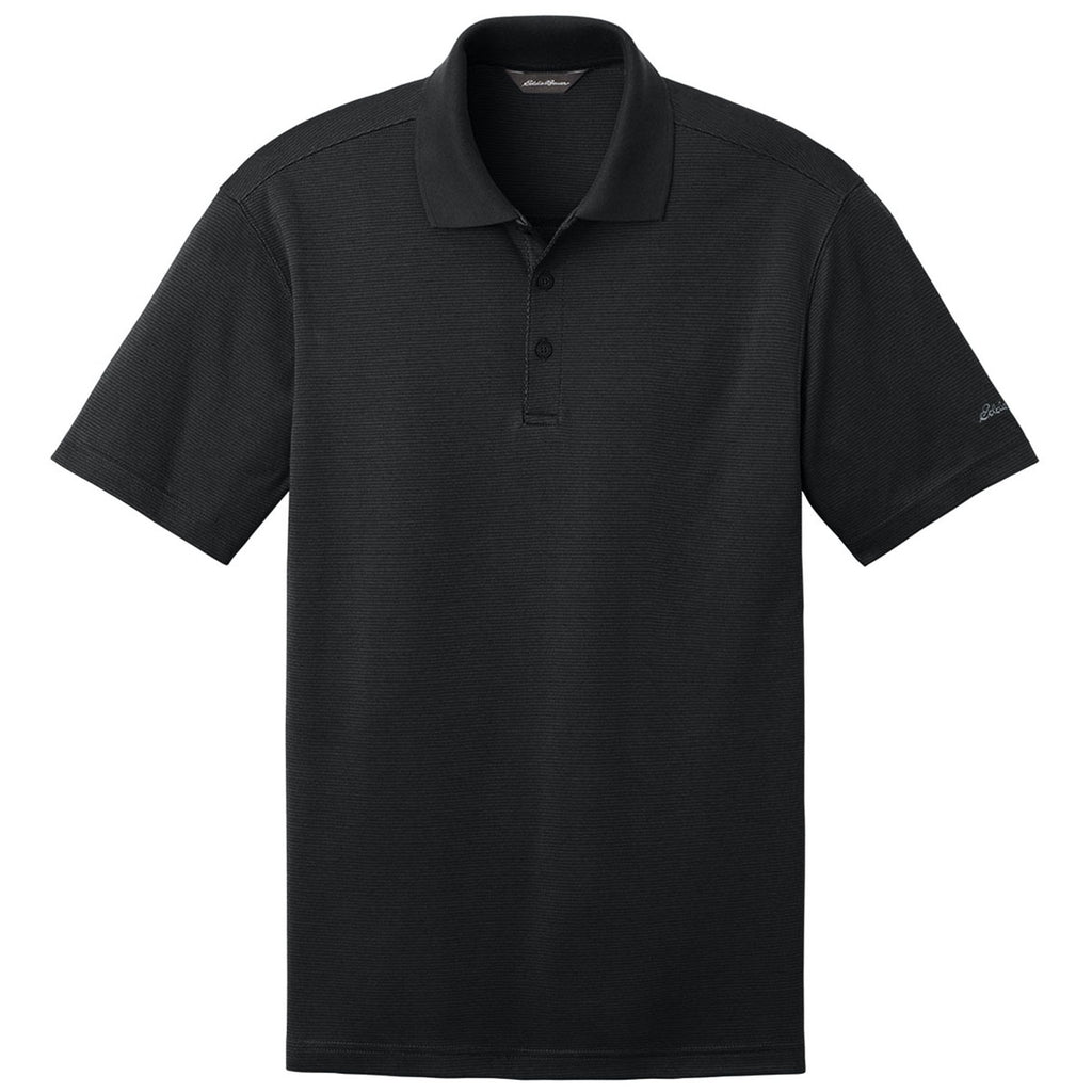 There are a lot of variables that go into making an everyday, work-ready polo. Consider this Eddie Bauer Men's Black Performance Polo, for example. Featuring a 4.7oz. lightweight construction, it feels great all day long-almost as if you're not even wearing it. And with attention to detail like a flat knit collar and three buttons dyed to match the fabric, you can't go wrong with the style, either. This is the polo that makes for ideal layering-or can be used around the office as perfect employee wear. If you need a new employee uniform that's stylish and durable, add your logo to this polo with our custom embroidery process. Not your run-of-the-mill polo. This cotton-rich, high-performance essential wicks moisture and controls odor for optimal comfort. With an easy care blend, it also resists wrinkles and shrinkage and features UPF 30 sun protection for wherever adventure takes you.