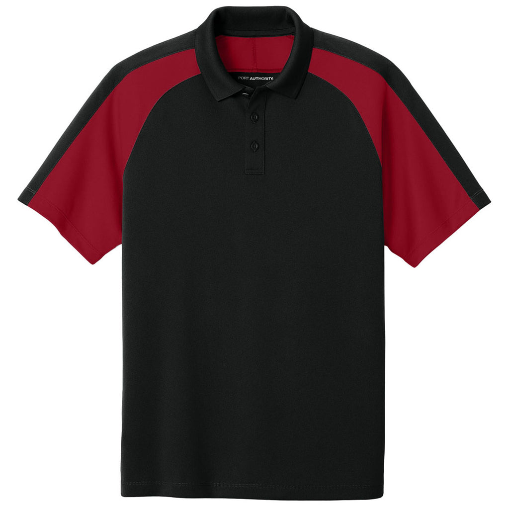 Port Authority Men's Deep Black/Rich Red Wearever Performance Pique Colorblock Polo