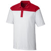 Two contrasting colors work brilliantly for the custom logoed Clique Men's White/Navy Parma Colorblock Polo. As one of the most popular golf shirts in the Clique line of company apparel, the versatile polo is also appropriate for wearing at business seminars and conferences. Remember to add your company logo on the embroidery area to take advantage of the attention paid to the polo by your professional peers. Cover stitch detail enhances the aesthetic appeal of the polo, while ensuring the short sleeve shirt does not fray because of frequent use. The 100% polyester fabric resists rips and tears to look as fresh today as it looked the first time you put the polo on.Corresponding Women's Style:Clique Women's White/Navy Parma Colorblock Polo