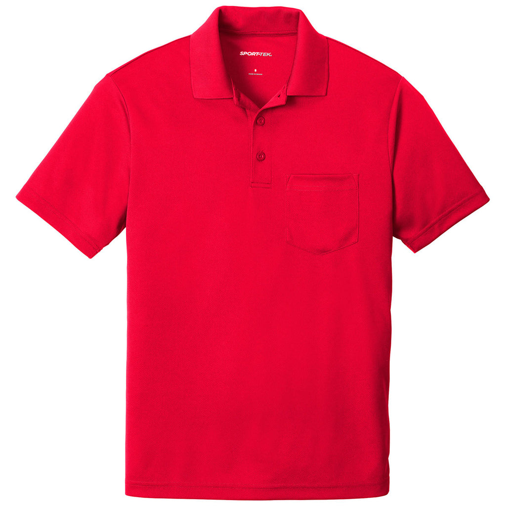 Due to the super fine flat back RacerMesh fabric, the company logoed Sport-Tek Men's True Red PosiCharge RacerMesh Pocket Polo delivers optimal breathability to ensure all day comfort. Superior cooling turns a hot, humid day into your advantage by keeping you feeling incredibly fresh. Patented PosiCharge technology prevents the bright colors from bleeding during wash cycles. Rip and tear resistant polyester fabric gives you a go to polo for years to come. Add a custom logo to present an embroidered marketing sensation at the next industry trade show. The three-button placket presents a visually appealing appearance that gets your team noticed.Highlights